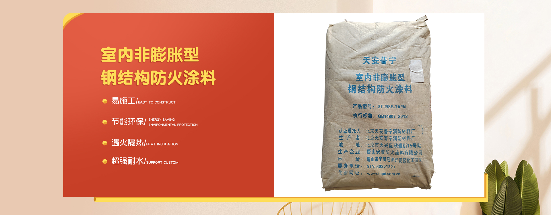 北京天安普寧消防材料廠是一家從事防火涂料二十多年生產企業(yè),企業(yè)集研制開發(fā)、生產銷售及各類防火涂料施工為一體。 企業(yè)員工總數(shù)100人,其中管理人員20人,科研人員10人,銷售50人,其他員工十多人。企業(yè)生產用地面積2000平方米左右,辦公用地面積1000平方米。擁有先進的生產設備20多臺,年生產量10000余噸。 企業(yè)擁有一支高學歷、資歷深的研發(fā)隊伍,以科學的管理,先進成套的生產流水線設備及完善的產品質量檢驗措施,開發(fā)出TAPN系列防火涂料產品,可以滿足于各類建筑工程中不同基材、不同技術要求的防火保護,天安普寧系列防火涂料全部經(jīng)過《國家消防及阻燃產品質量監(jiān)督檢驗中心》檢驗,理化性能合格,防火性能高,通過《應急管理部消防產品合格評定中心》認證并獲得《消防身份信息標識》。 企業(yè)結合多年的工程施工實踐經(jīng)驗,培養(yǎng)了一支專業(yè)有素、經(jīng)驗豐富、高質量、效率高的防火涂料施工隊伍,可承攬各類高層、多層、大跨度廠房及網(wǎng)架鋼結構防火涂料噴涂施工服務。 企業(yè)始終為用戶全心全意服務,不斷滿足各建設單位的要求,共同為我國的建筑消防事業(yè)作出更大的貢獻,衷心感謝新老客戶的支持,全體員工熱情歡迎廣大用戶的光臨惠顧。